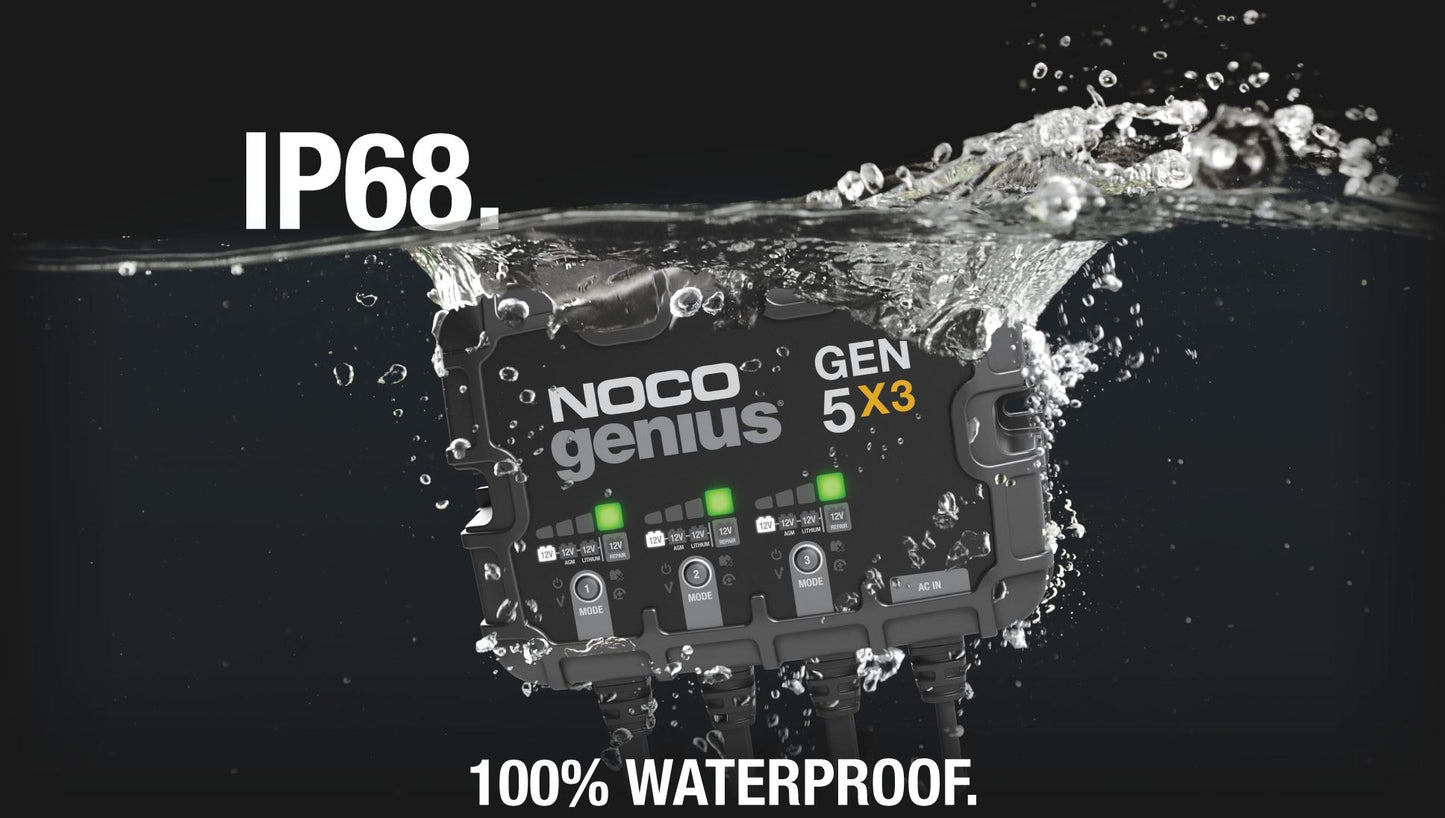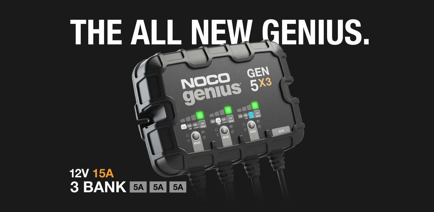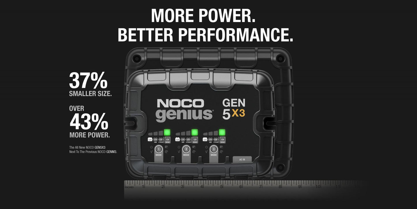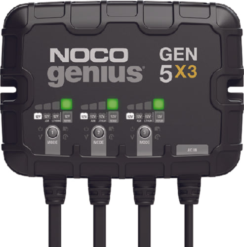Meet the all-new GEN5X3. Similar to our GENM3, only better. It's 37% smaller and delivers 43% more power. It's one of the best performing onboard marine battery chargers we have ever made. A three-bank onboard battery charger rated at 15-amps (5-amps per bank) for 12-volt batteries, including marine, boat, starter, and deep-cycle batteries. Independently charge and control each battery bank with selectable charging modes - including 12V, 12V AGM, 12V Lithium, and 12V Repair Mode - for all types of lead-acid and lithium-ion batteries.
