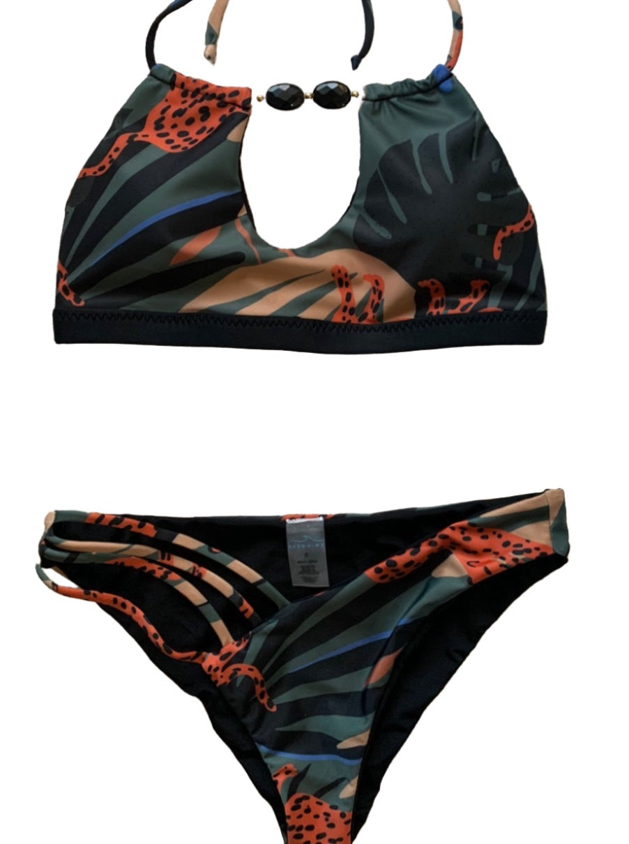 Maui bikini bottoms in print Rainforest Oasis. Seamless swimsuit, reversible black, available in minimal, medium, and full coverages.
