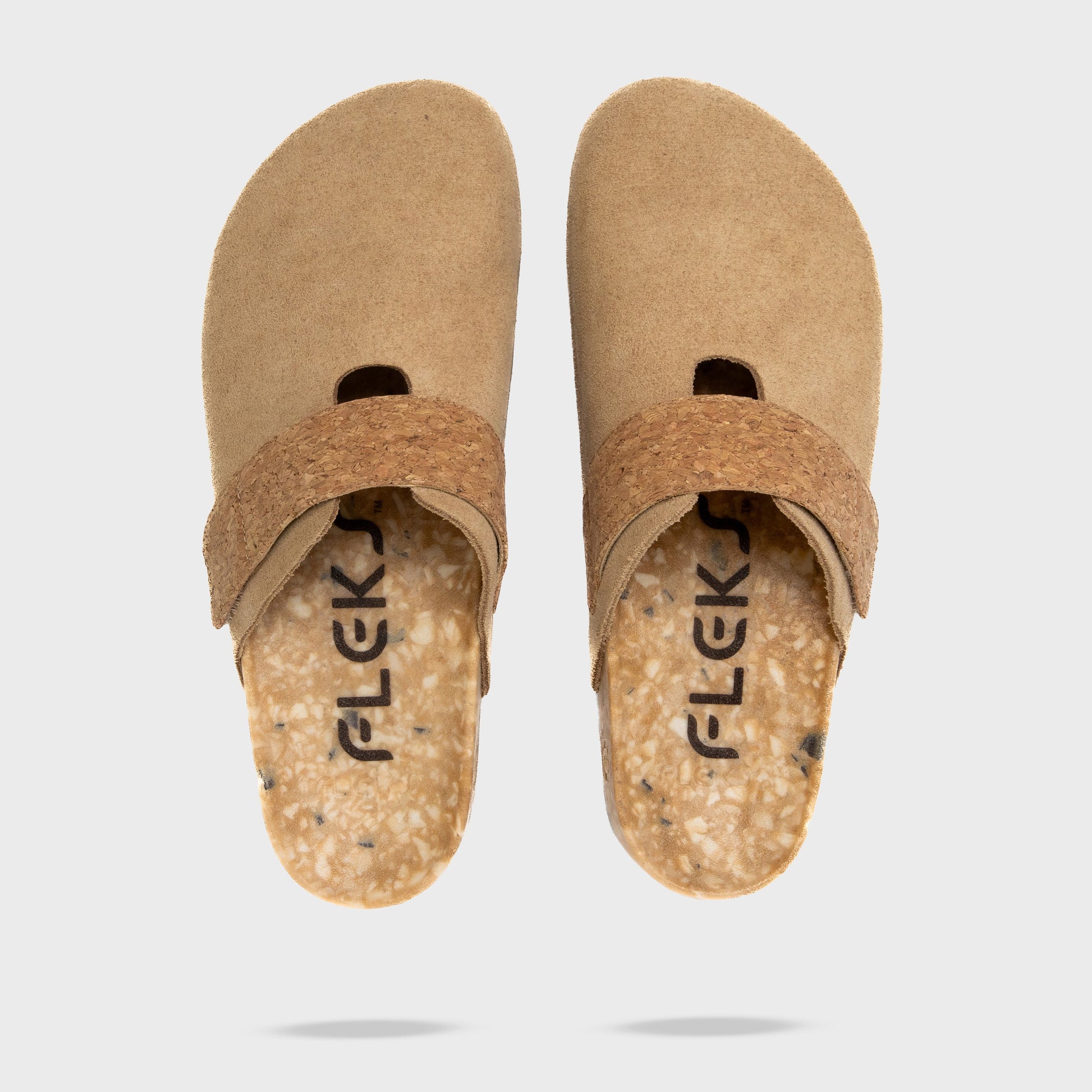 The suede is created by reclaiming suede scraps that would otherwise go to waste, transforming them into a soft, durable upper full of natural character. Paired with the warmth of cork, the result is a color that feels both natural and quietly refined.