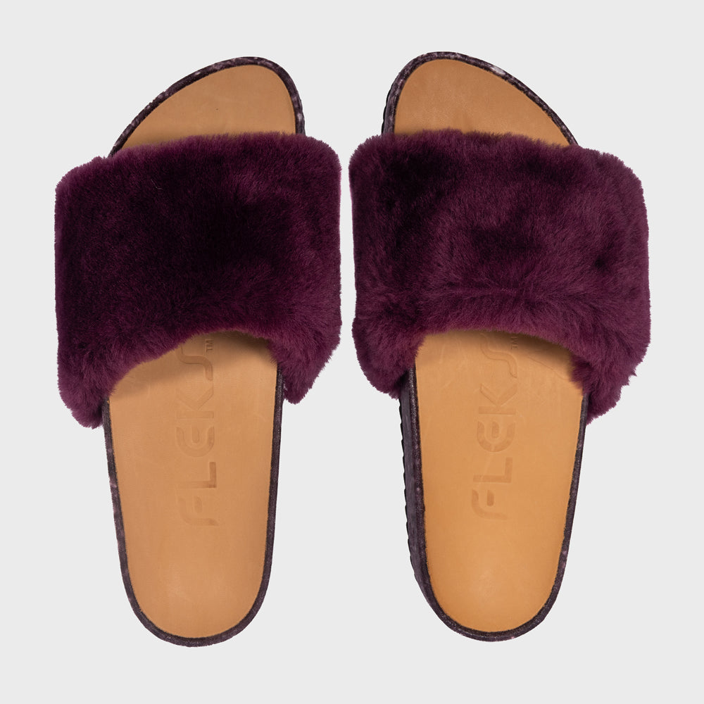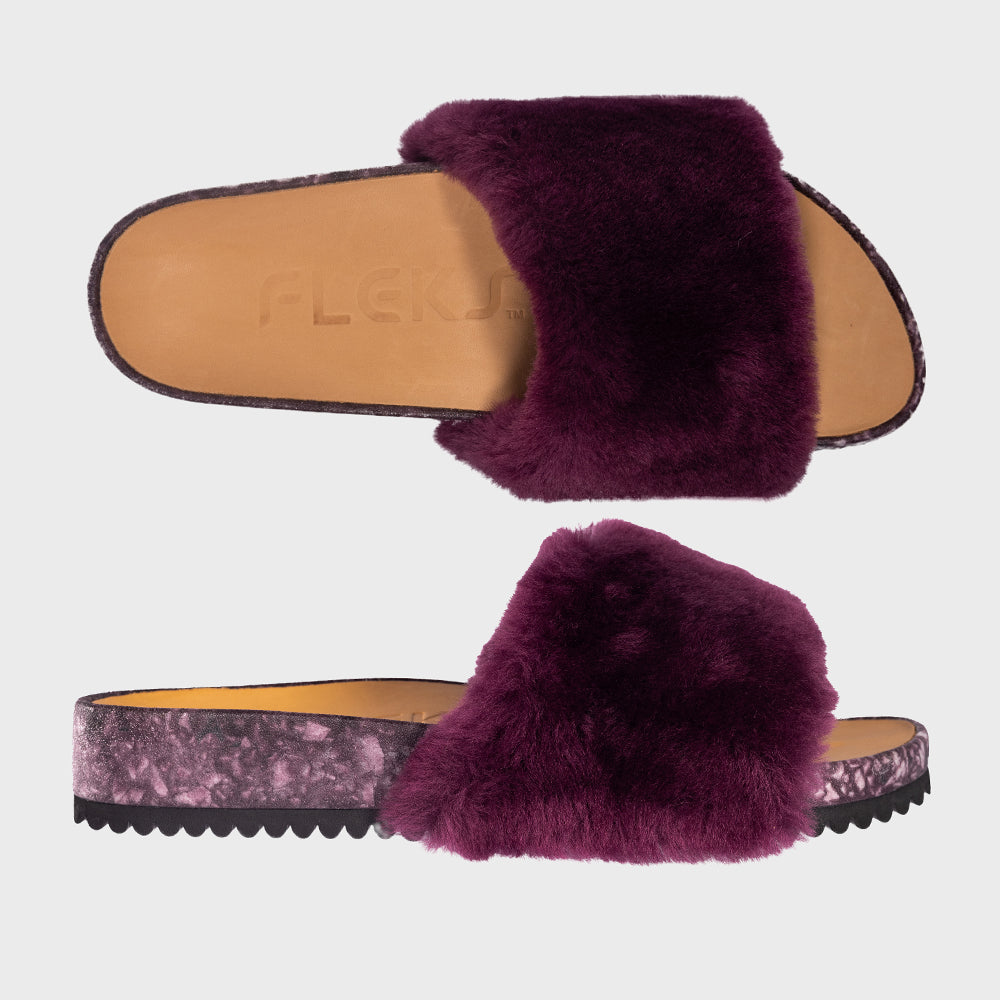 Soft shearling across the top. Sculpted support beneath your feet. The San Ysidro Slide is the sandal that captures that unmistakable Fleks feeling.