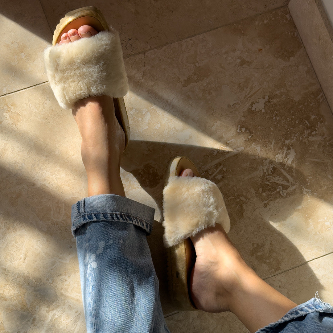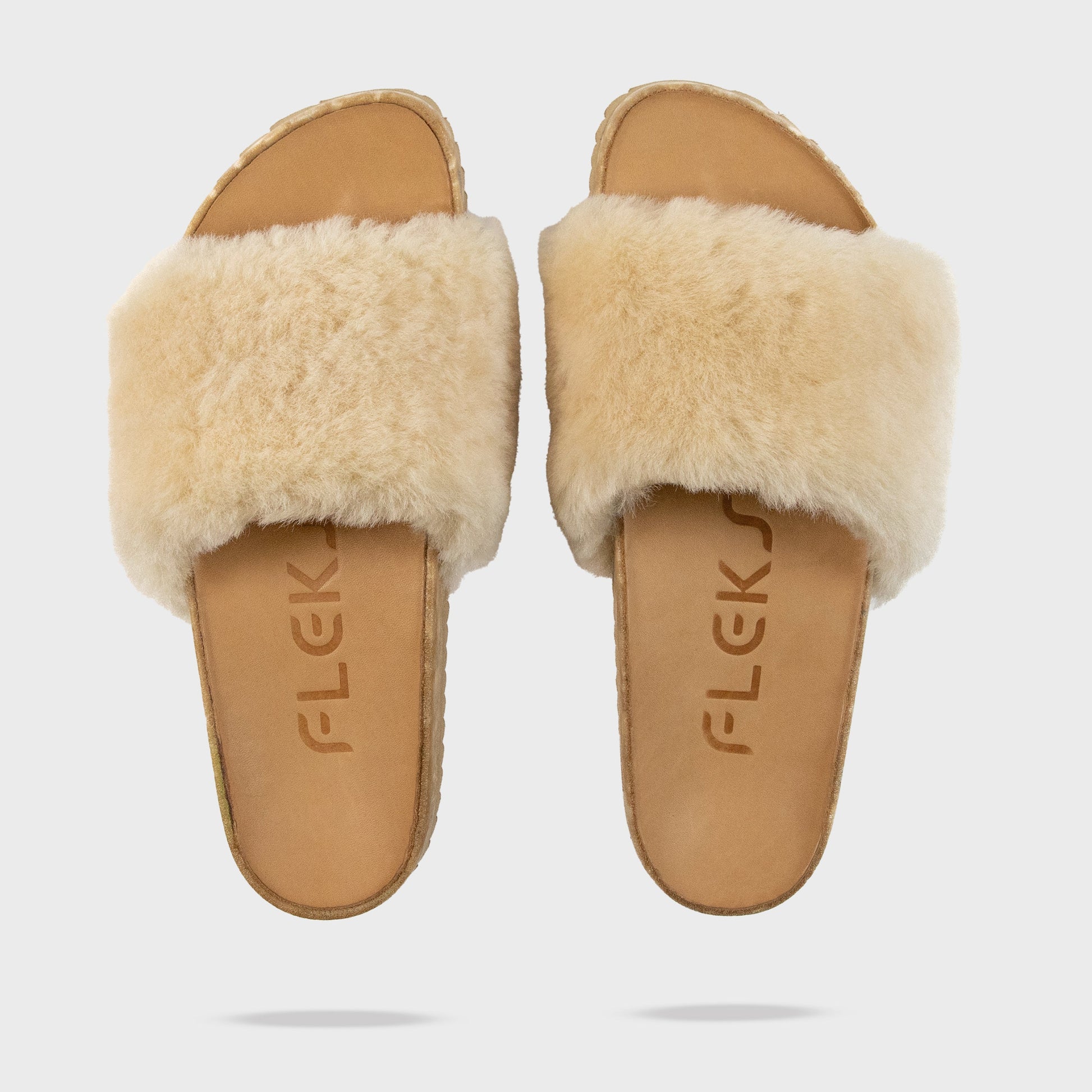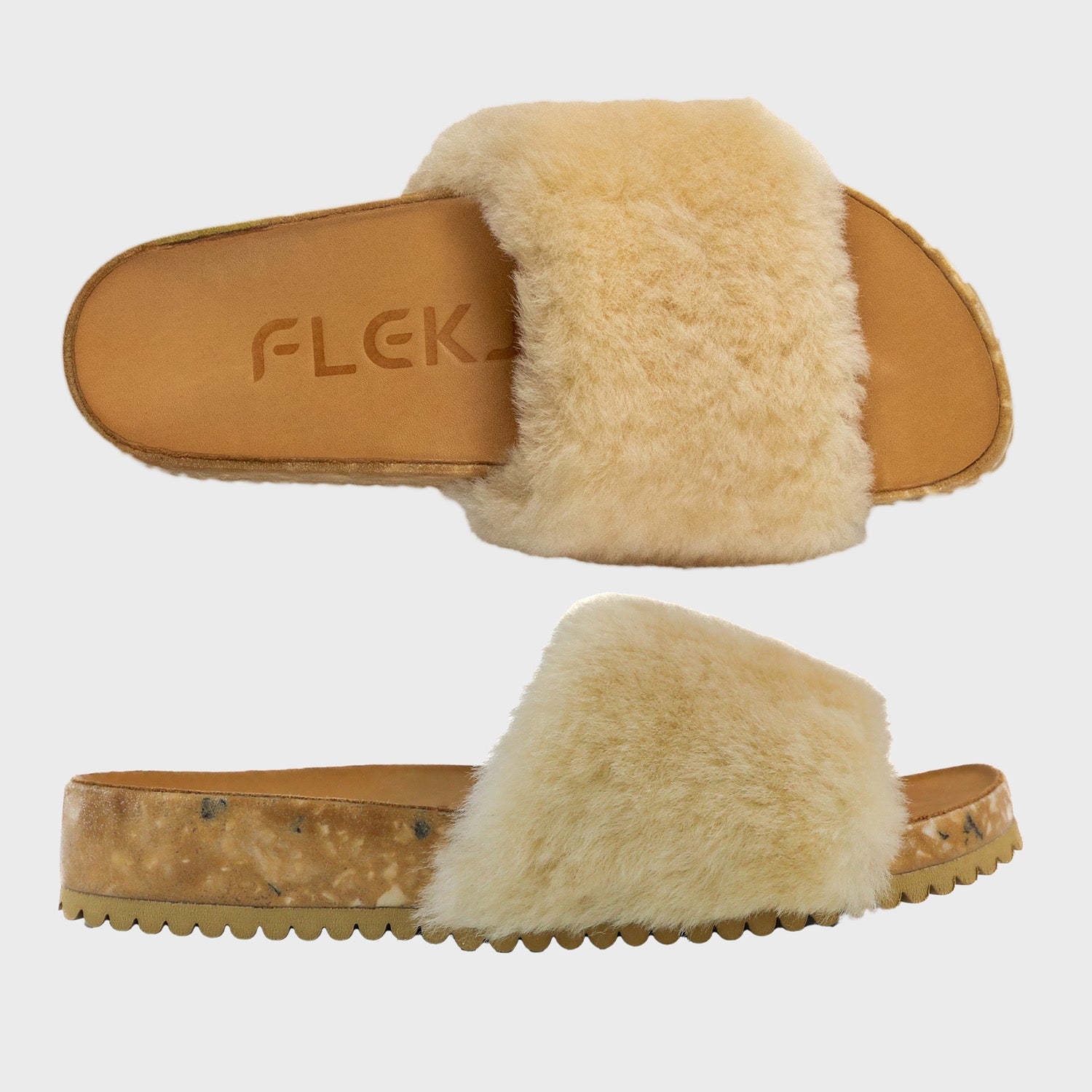 Soft shearling across the top. Sculpted support beneath your feet. The San Ysidro Slide is the sandal that captures that unmistakable Fleks feeling.