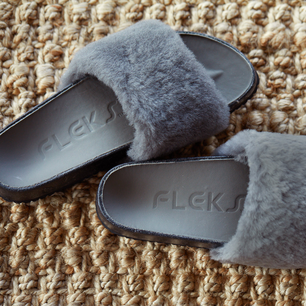 Character Leather in Charcoal Gray is lightly embossed with our Fleks logo.