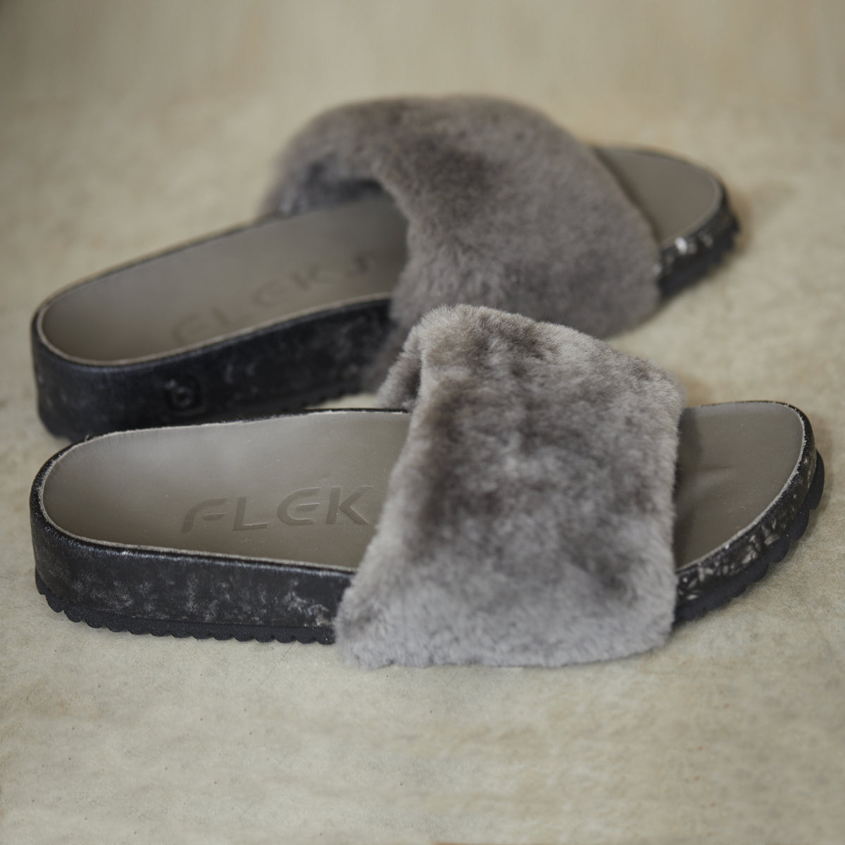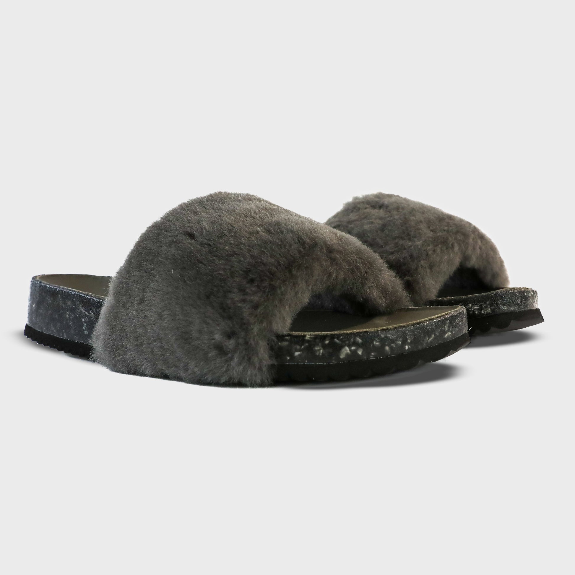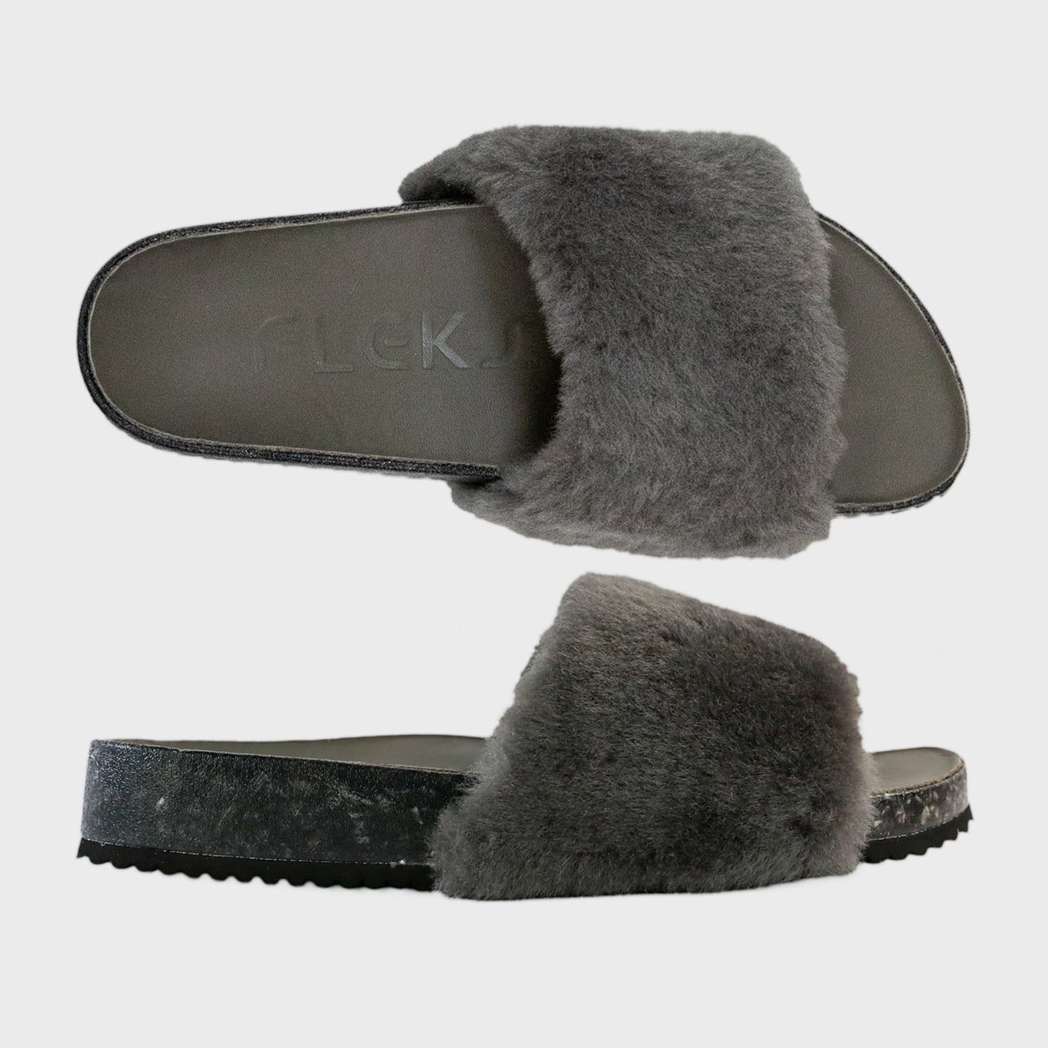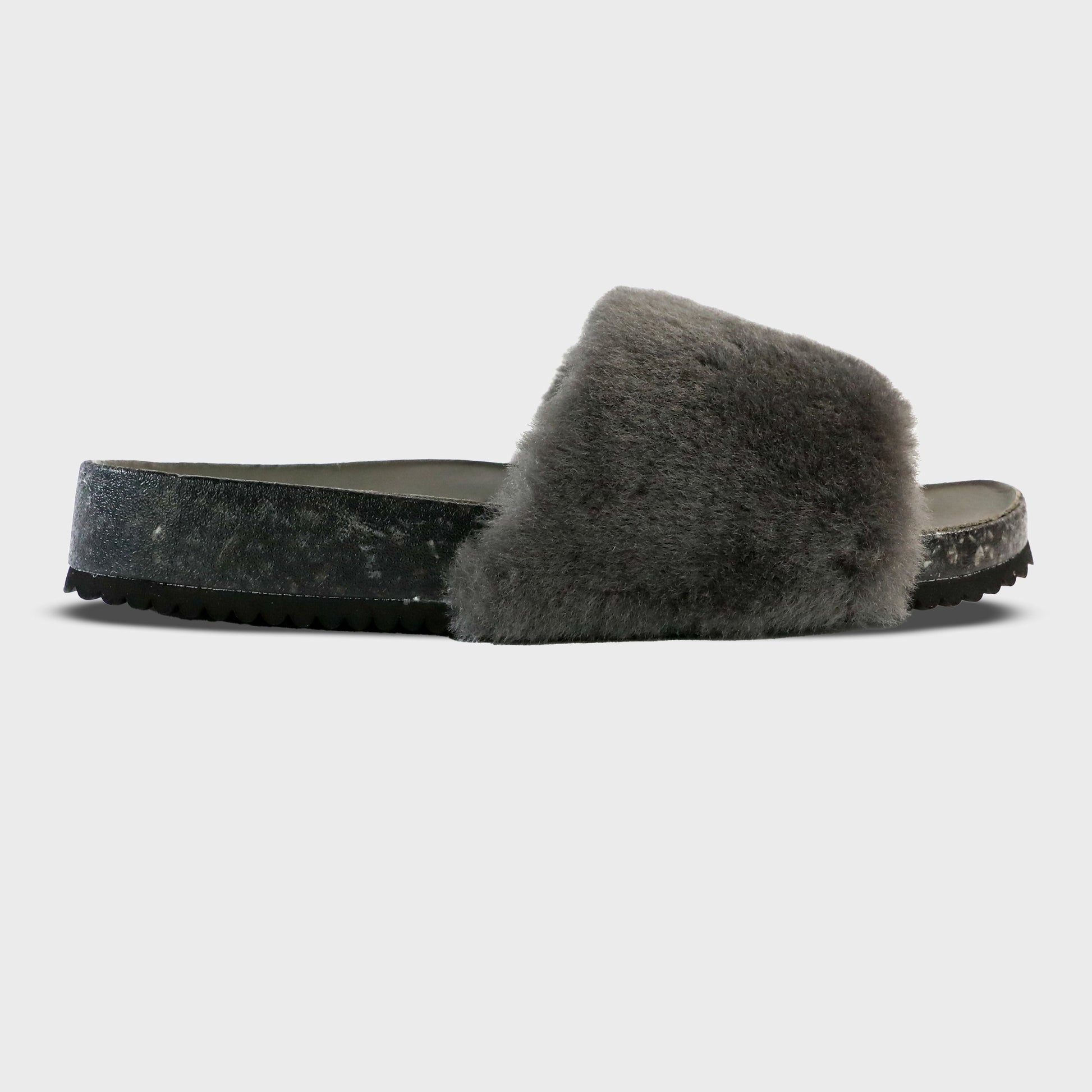 Genuine sheepskin in Charcoal Gray.