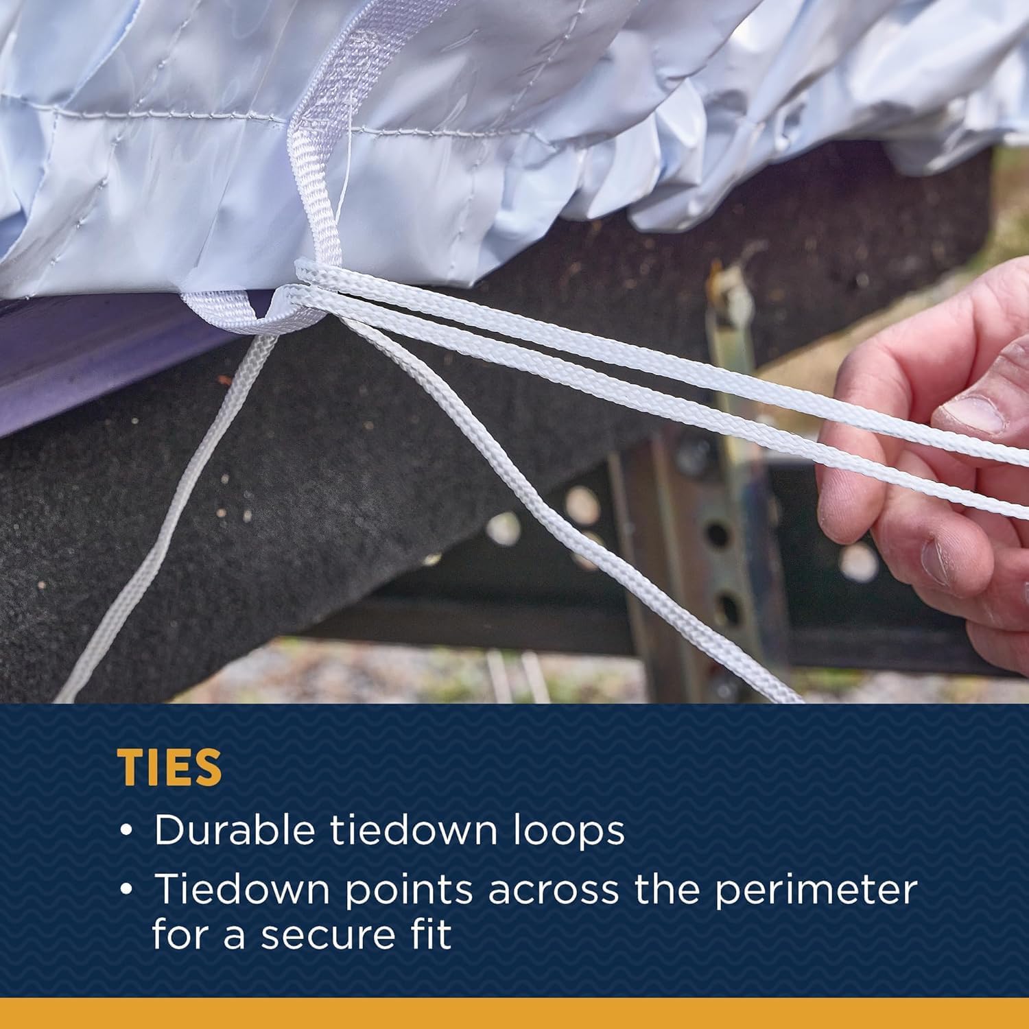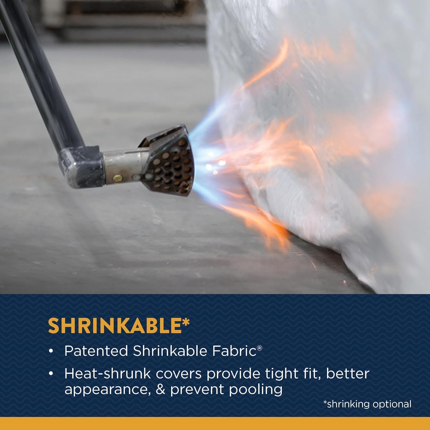 Boat shrink wrap full over the tower cover for MasterCraft, Malibu, Sanger, Supra and more. This is the best quality cover you can buy. This complete shrink wrap comes with a soft inter lining that protects against scratching and damage to the boat. A shrink wrap without this will scratch the gelcoat and rubrail. Our boat shrink wrap is the exact same marital the manufactures use to ship the boats to your local dealers. This is the perfect winter cover for any environment preventing snow and water damage. These shrink wrap covers come vented, with pull strings, and ready to cover any size boat. This shrink wrap cover will also cover your swim platform.